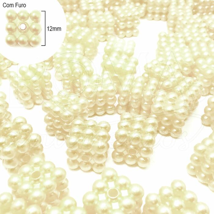 Descrição Pérola Craquelada Quadrada com Furo - 12mm - Creme - RO.151209