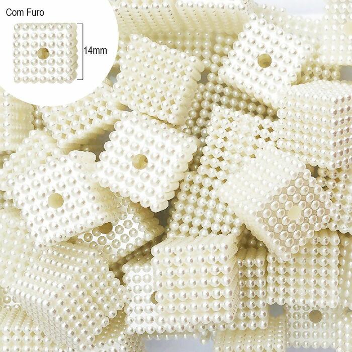Descrição Pérola Craquelada Quadrada com Furo - 14mm - Creme 238 - RO.151209