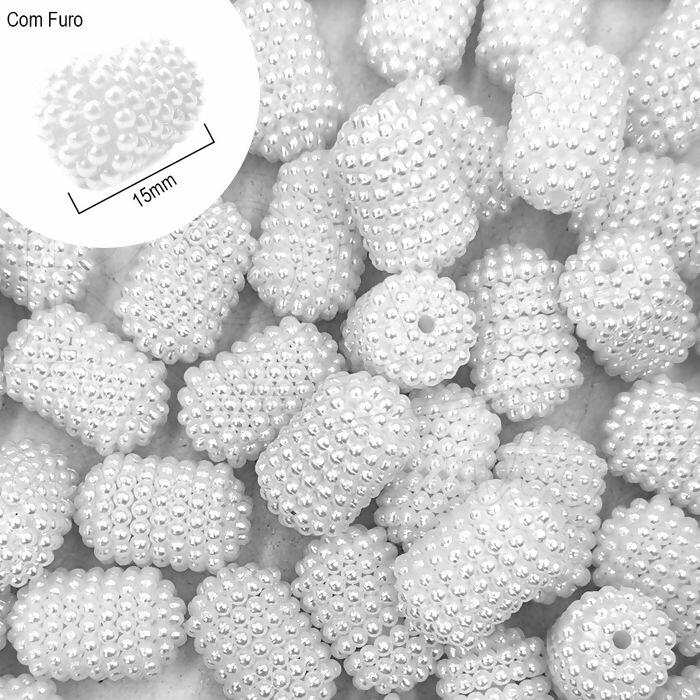 Pérola Craquelada Tubo - Com Furo - 10mm x 15mm - Branco - RO.151208