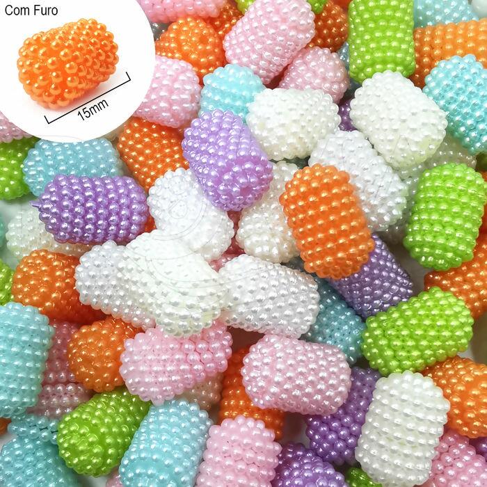 Pérola Craquelada Tubo - Com Furo - 10mm x 15mm - Sortido Claro - RO.151208