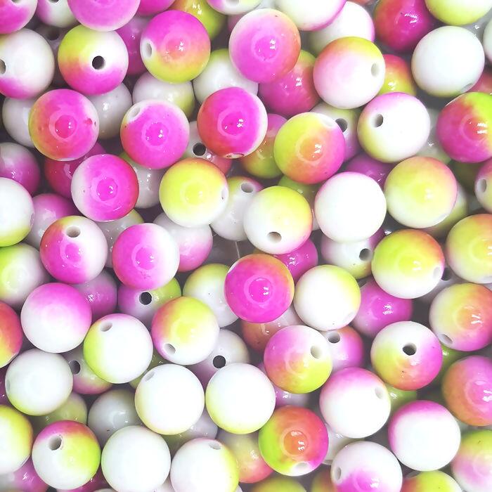 Pérola inteira acrílica - com furo - 100 gramas - pink e verde - RO.150345