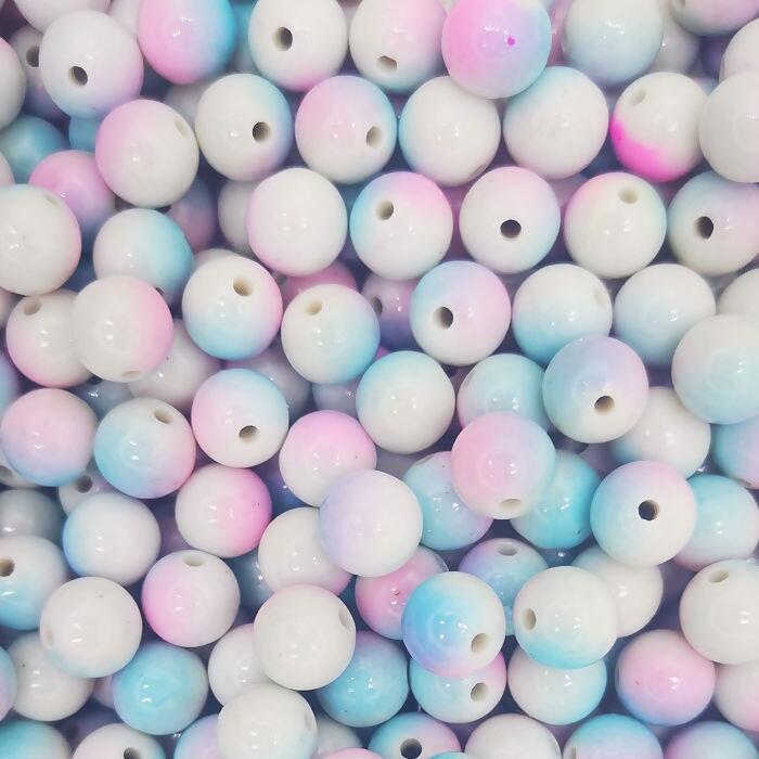 Pérola inteira acrílica - com furo - 100 gramas - rosa e azul - RO.150345