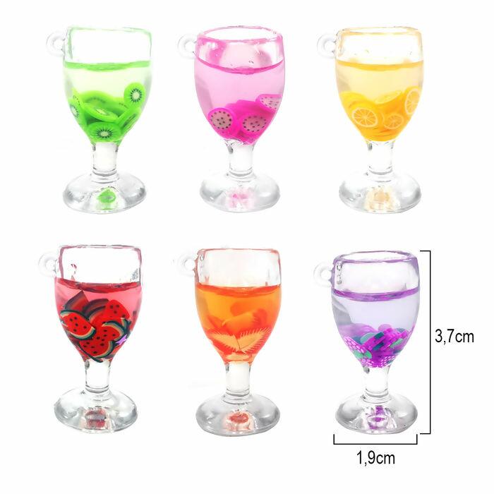 Descrição Pingente Acrílico Taça de Frutinhas - pacote com 20 unidades - 1,9cm x 3,7cm - Sortido - RO.150646