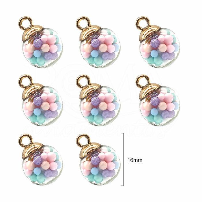 Pingente Bola de Vidro com bolinhas - 16mm - Sortido - RO.151323
