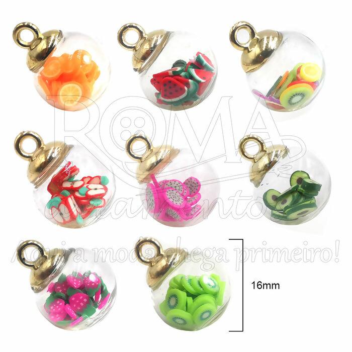 Pingente Bola de Vidro com Frutas - pacote com 100 unidades - 16mm - RO.150797