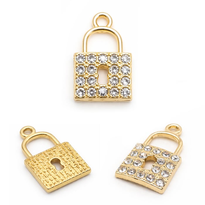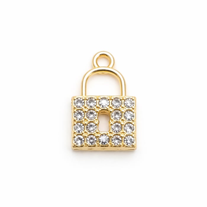 Pingente Cadeado Dourado com Strass 2,3cm x 1,3cm 20 Unidades