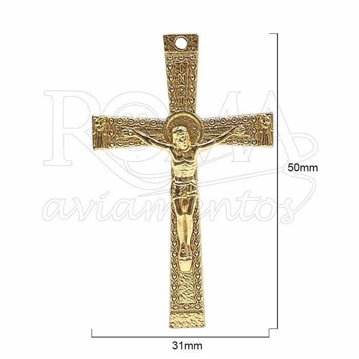 Descrição Pingente Cruz- 20 unidades - 31mm x 50mm - Dourado - 074717