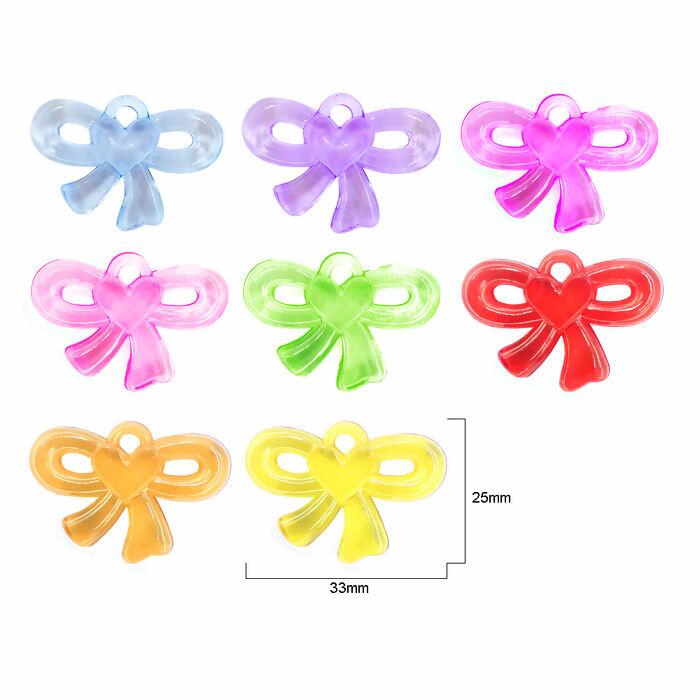 Descrição Pingente Lacinho - Acrílico - pacote com 500g - Cores Sortidas - 33mm x 25mm - 053000