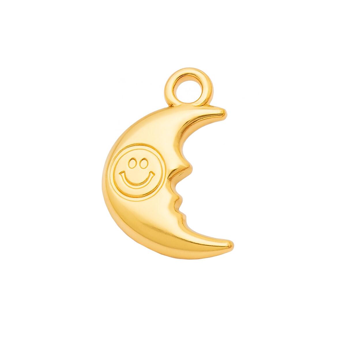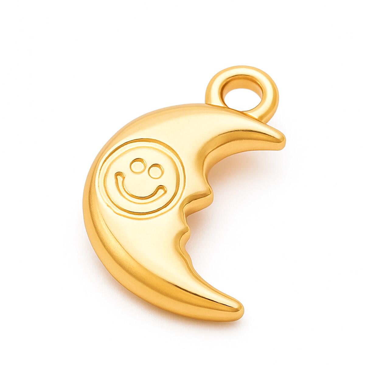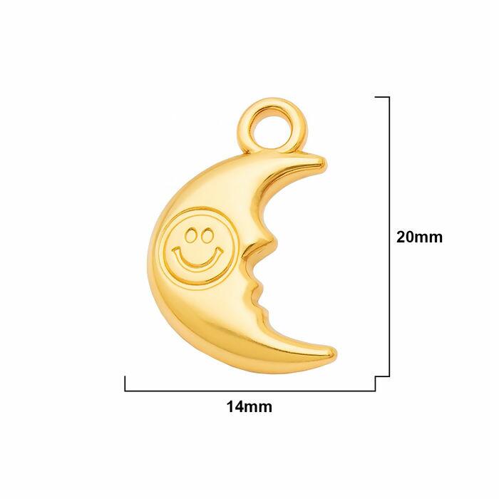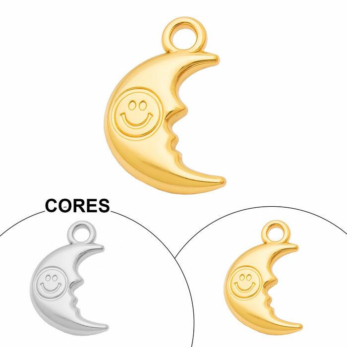 O pingente lua 14x20mm é uma peça encantadora que une delicadeza e um toque divertido. Com formato de meia-lua e rostinho sorridente em relevo, traz leveza e boas energias às suas criações. Produzido em 100% plástico, possui acabamento metálico de alto brilho e está disponível nas cores dourado e niquelado.