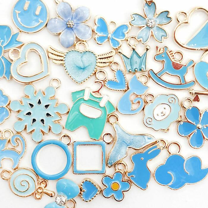 Aqui na Roma Aviamentos você encontra Pingente de metal sortido nas cores azul e dourado.