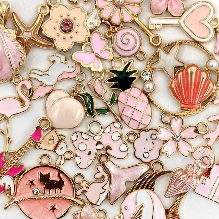 Aqui na Roma Aviamentos você encontra Pingente de metal sortido nas cores rosa e dourado.