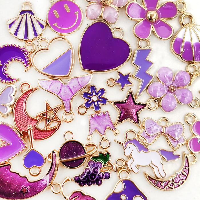 Aqui na Roma Aviamentos você encontra Pingente de metal sortido nas cores roxo e dourado.
