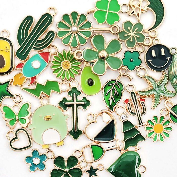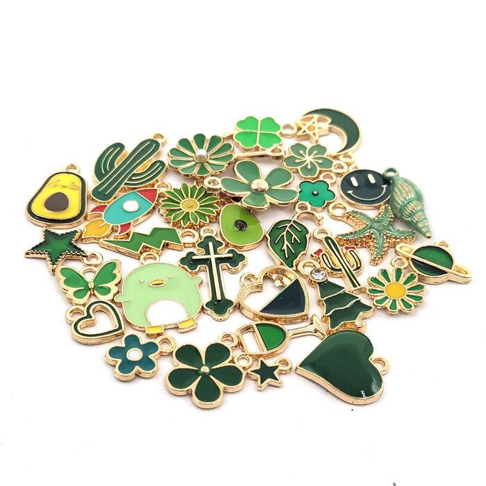 Aqui na Roma Aviamentos você encontra Pingente de metal sortido nas cores verde e dourado.