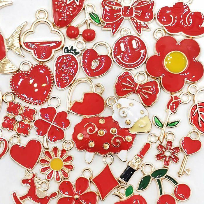 Aqui na Roma Aviamentos você encontra Pingente de metal sortido nas cores vermelho e dourado.