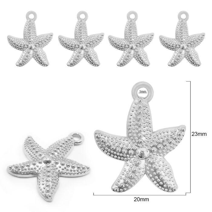 Detalhe Pingente Metal Estrela Princess - 23mm x 20mm - Prata - RO.151902