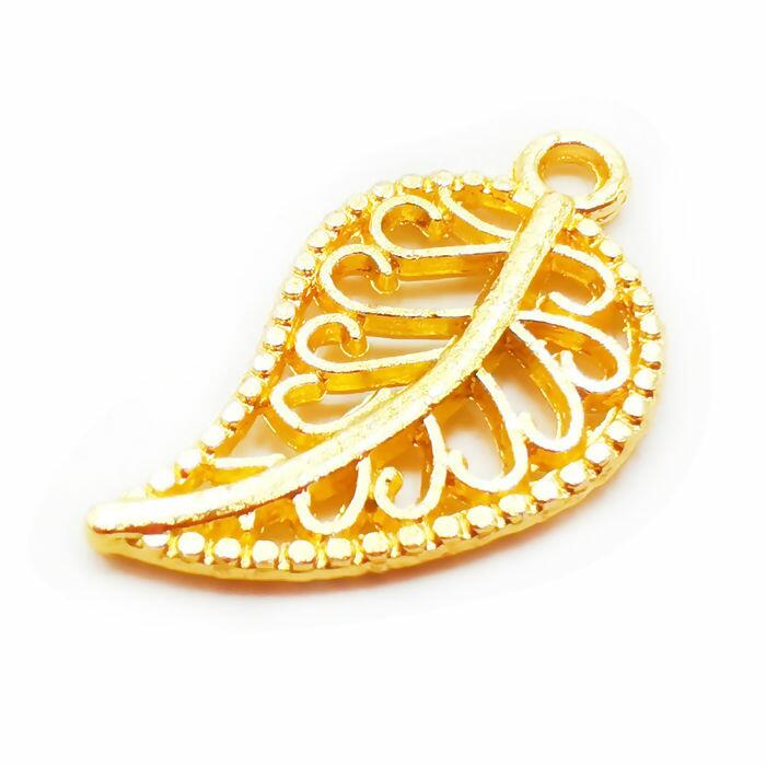 Detalhe Pingente Metal Folha Princess - 16mm x 8mm - Dourado - RO.151901