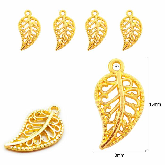 Pingente Metal Folha Princess - 16mm x 8mm - Dourado - RO.151901
