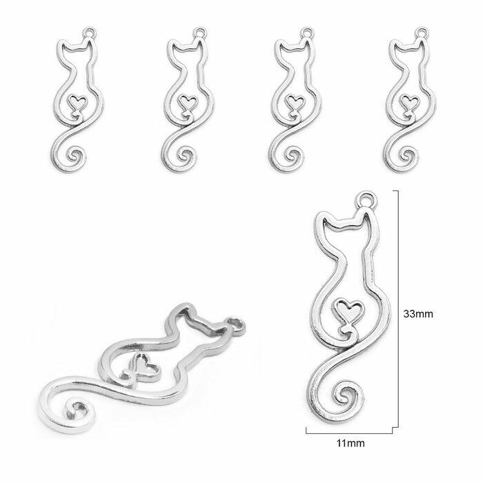 Descrição Pingente Metal Gato Princess - 33mm x 11mm - Níquel - RO.151848