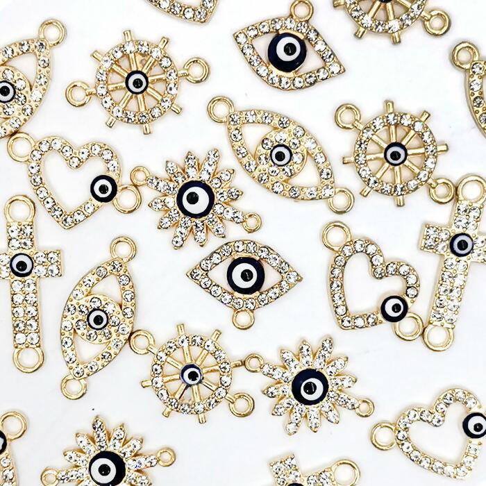 Aqui na Roma Aviamentos você encontra Pingente Metal Olho Grego sortido, são perfeitos para confecção de chaveiros, pingentes de bolsas e celulares, penduricalhos, brincos e muito mais.