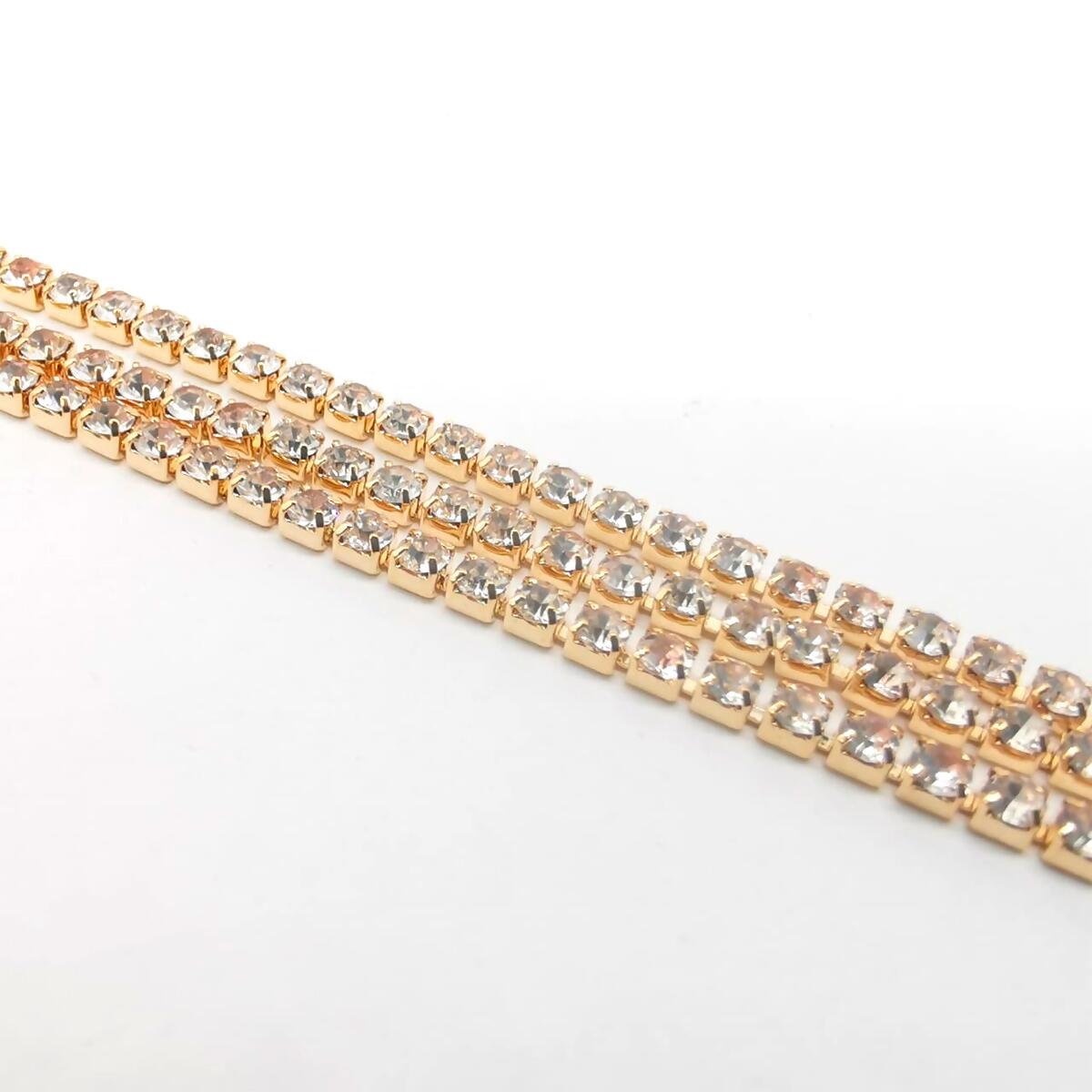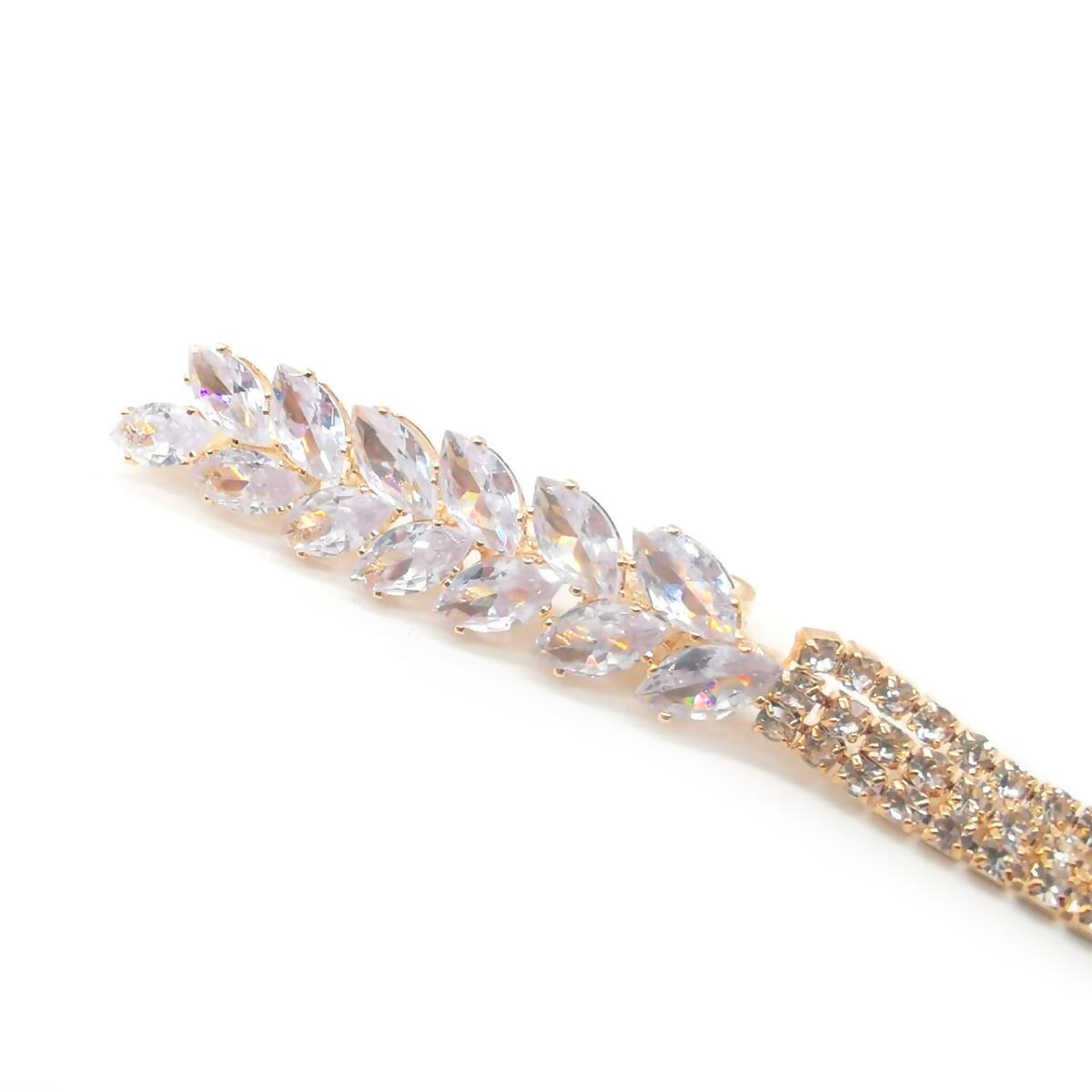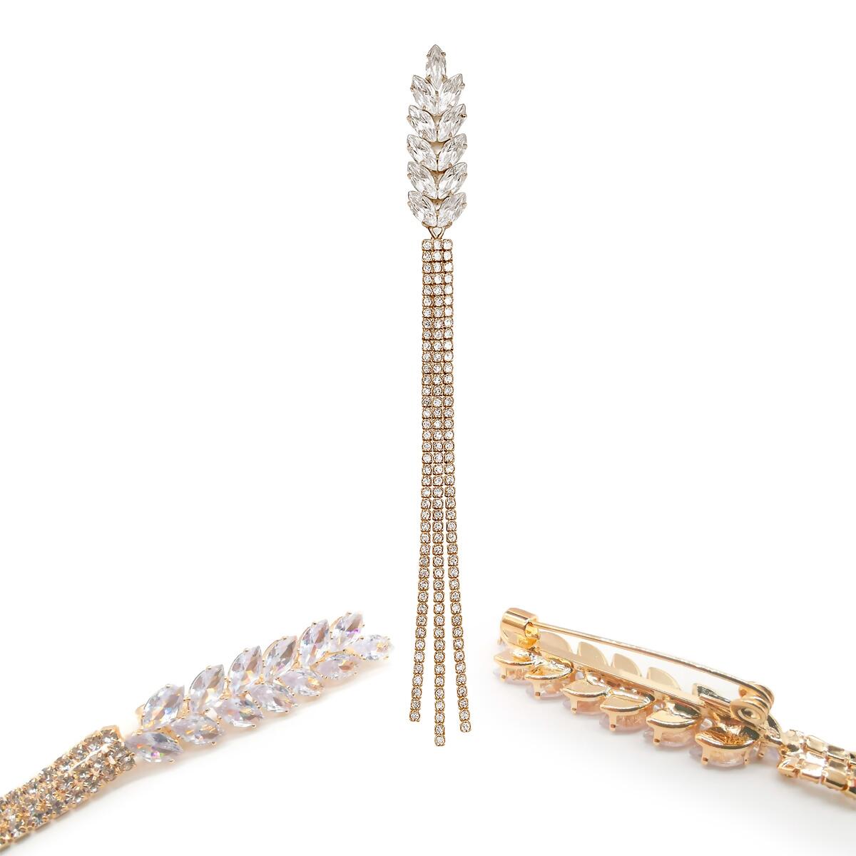 O Pingente Dourado com Strass e Cristais é uma peça sofisticada e reluzente, ideal para dar um toque de elegância em laços, roupas, tiaras, bolsas e acessórios artesanais. Seu design em formato de folha alongada, com cristais lapidados em tom dourado e base metálica brilhante, cria um visual luxuoso e moderno.
