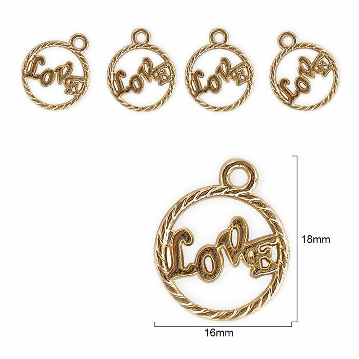 Plaquinha de Metal - Love - 18mm x 16mm - Dourado - RO.151489