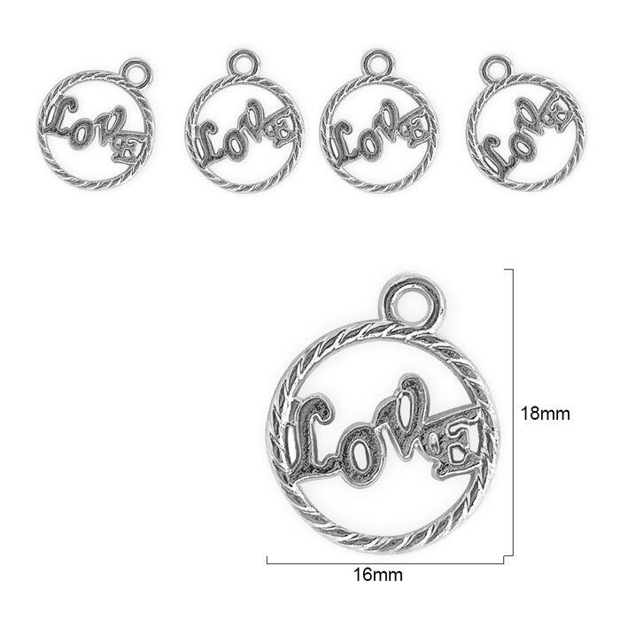 Plaquinha de Metal - Love - 18mm x 16mm - Níquel - RO.151489