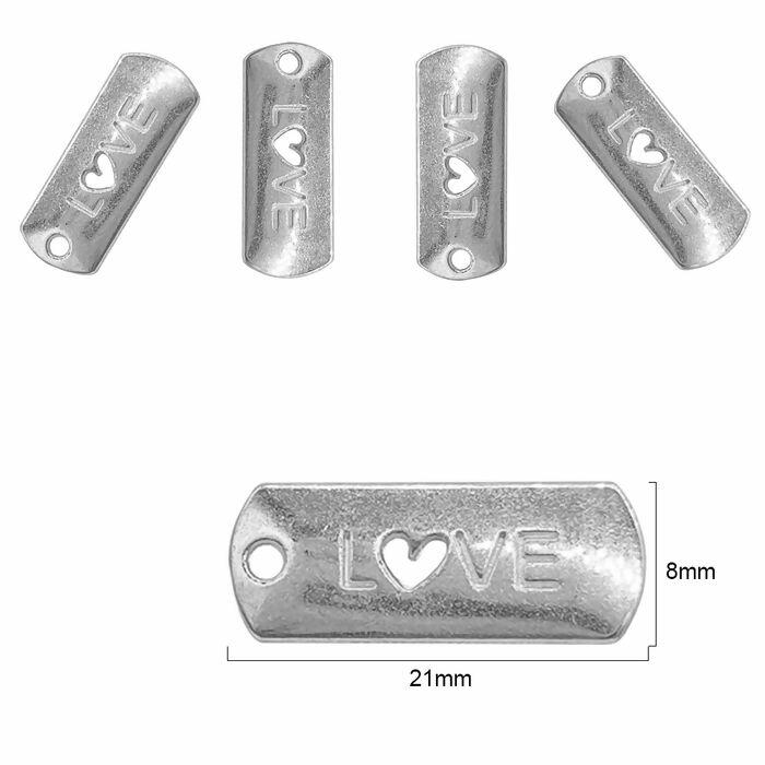 Plaquinha de Metal - Love - 8mm x 21mm - Níquel - RO.151487