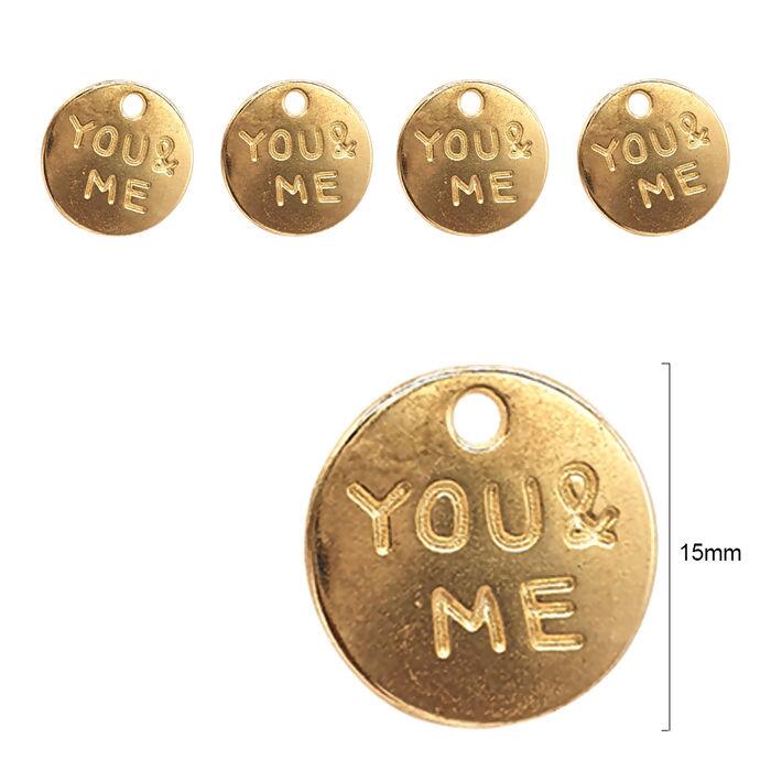 Plaquinha de Metal - You & Me - 15mm - Dourado - RO.151488
