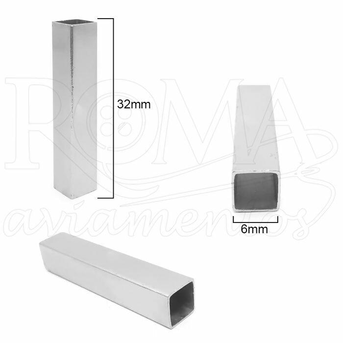 Descrição Ponteira Tubo Quadrado - 50 unidades - 6mm x 32mm - Prata - 1151