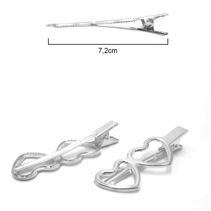 Descrição Presilha jacaré - bico de pato coração duplo - níquel - pacote com 100 unidades - RO.150388