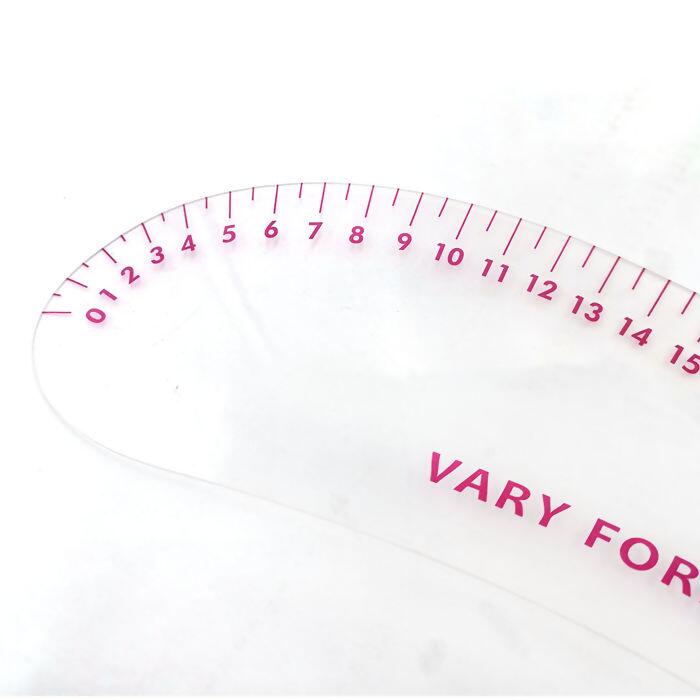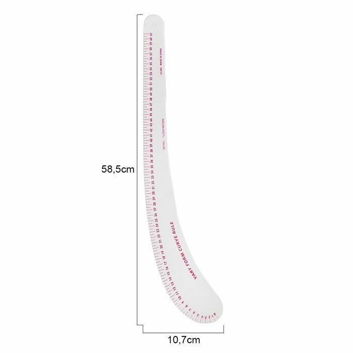 Régua super versátil para quem faz trabalhos com cortes, modelagem e costura. Possui marcações em linhas vermelhas, de centímetros e polegadas. Super flexível.