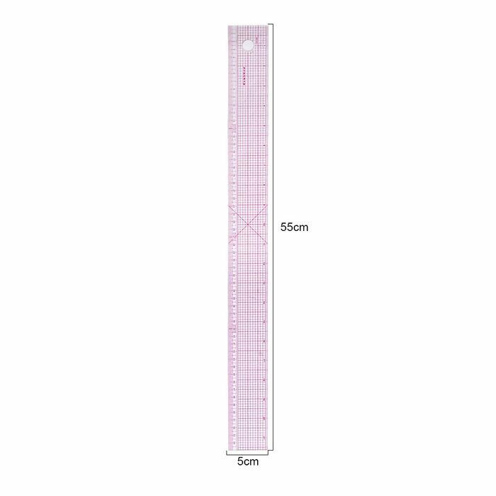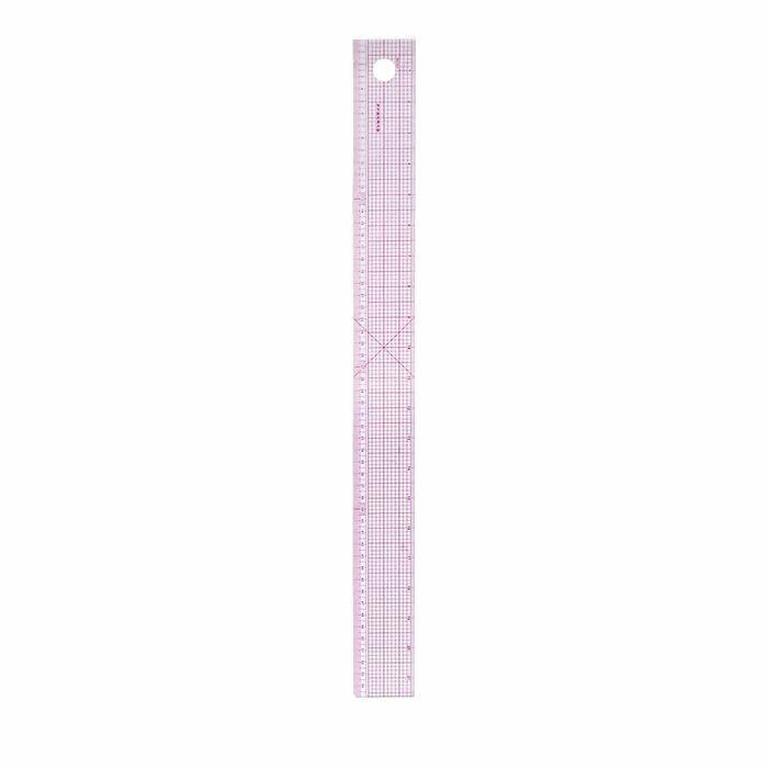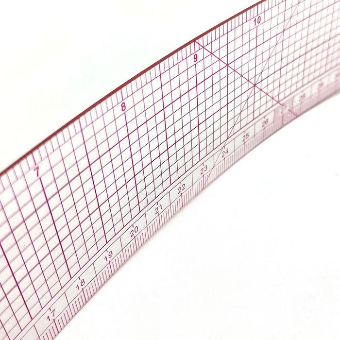 Régua super versátil para quem faz trabalhos com cortes, modelagem e costura. Possui marcações em linhas vermelhas, de centímetros e polegadas. Super flexível.