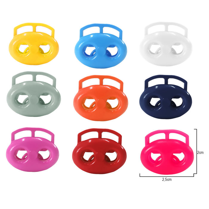 Regulador dois furos ritas é ideal para prender cordões e cadarços em peças de roupas e acessórios.