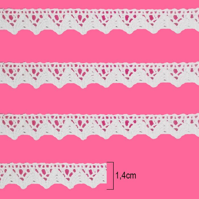 Descrição Renda de Algodão - 1,4cm x 10m - Branco - RA002-014