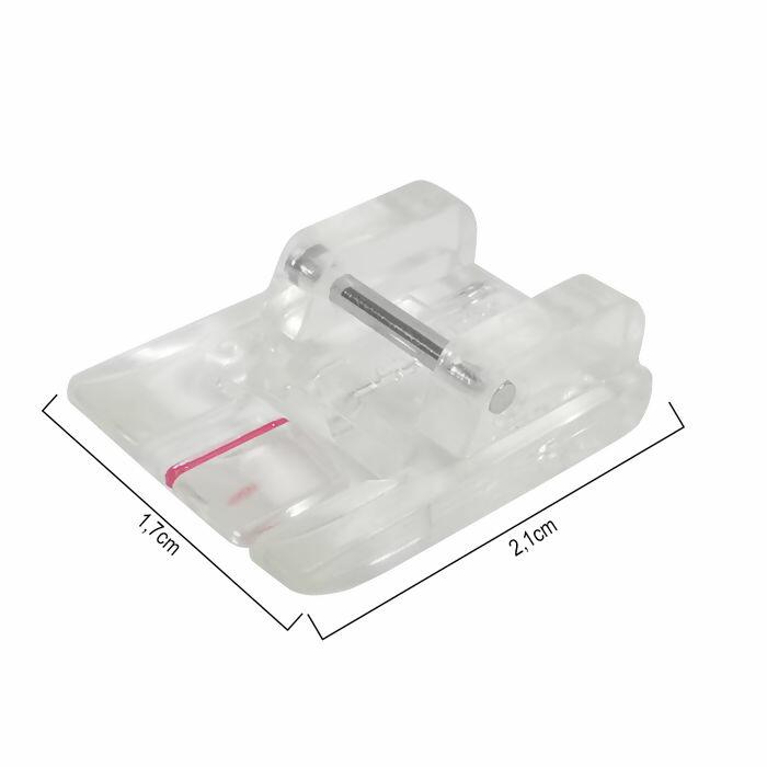 A sapata para pregar vivo e cordão com sua dupla canaleta permite uma costura rápida e prática de vivos e cordões simples ou duplos. Além de conter um rebaixe na lateral que permite aplicação de vivos e cordões em curvas. Serve em qualquer máquina doméstica como Singer, Brother, Elgin entre outras.