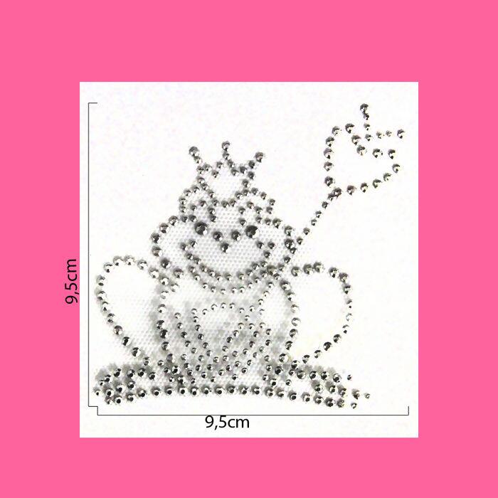 Strass Termocolante - pacote com 5 unidades - 9,5cm x 9,5cm - Sapo - Prata - 2378