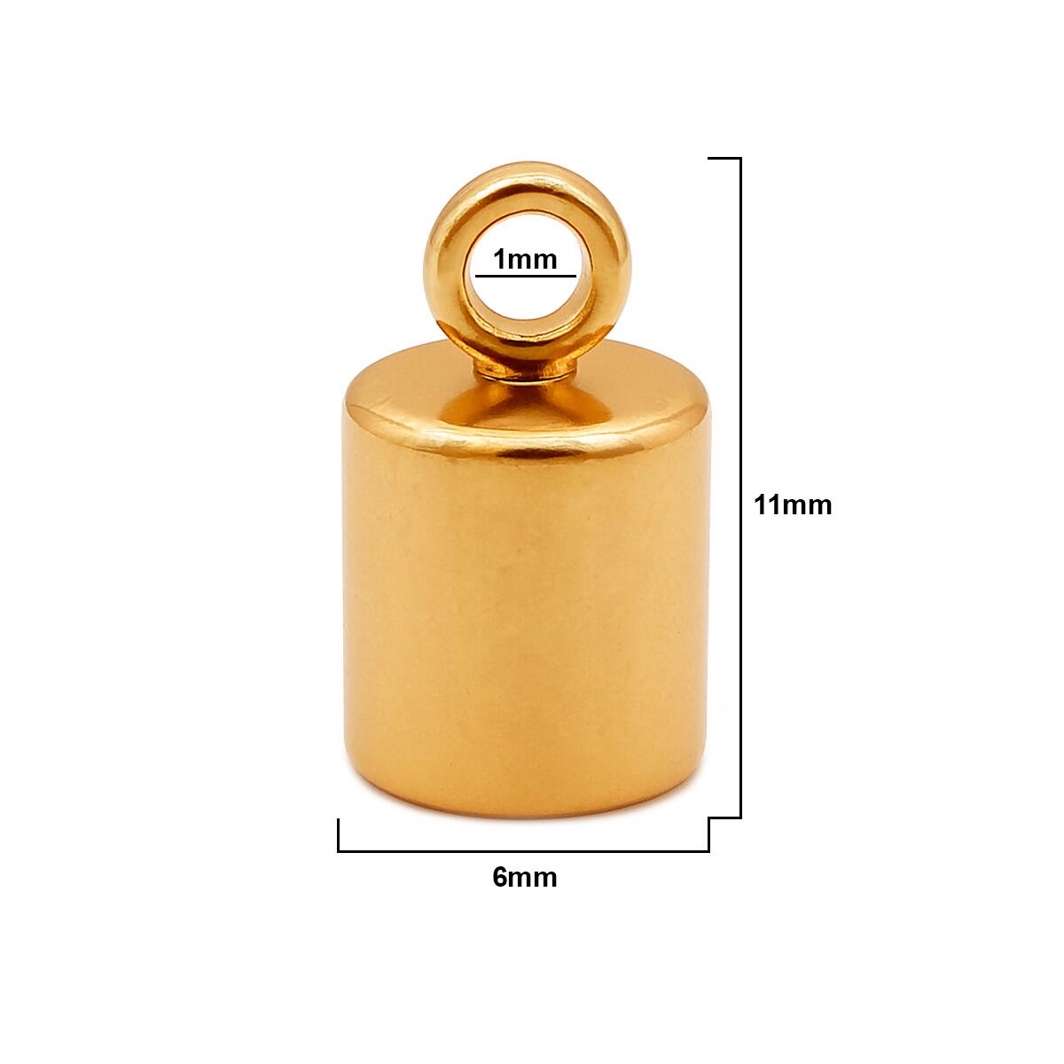 Medidas aproximadas: 11 mm de altura × 6 mm de largura, com argola interna de 1 mm.