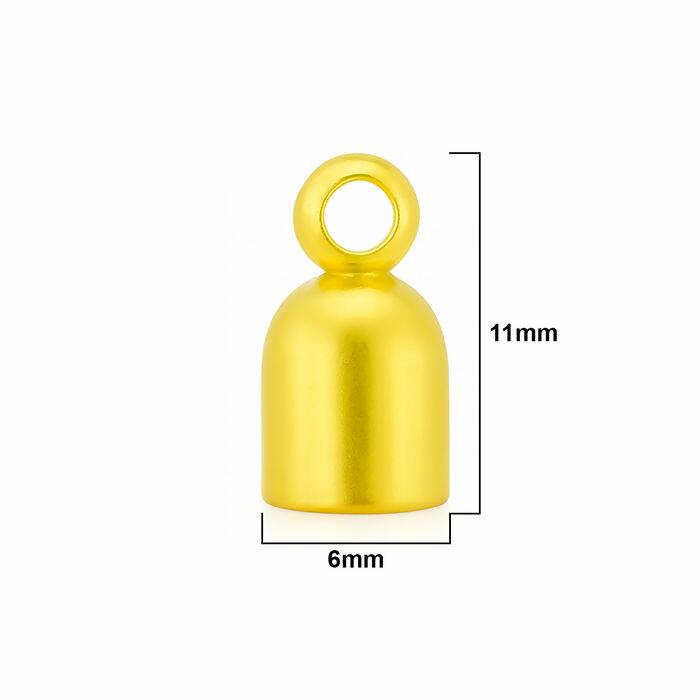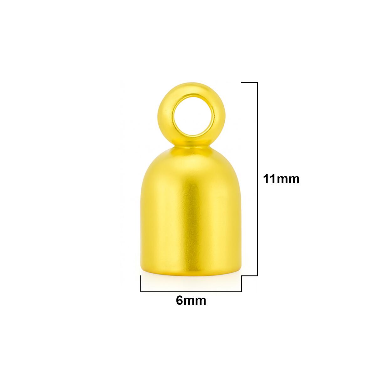 Medidas aproximadas: 11 mm de altura × 6 mm de largura, com argola interna de 1 mm.