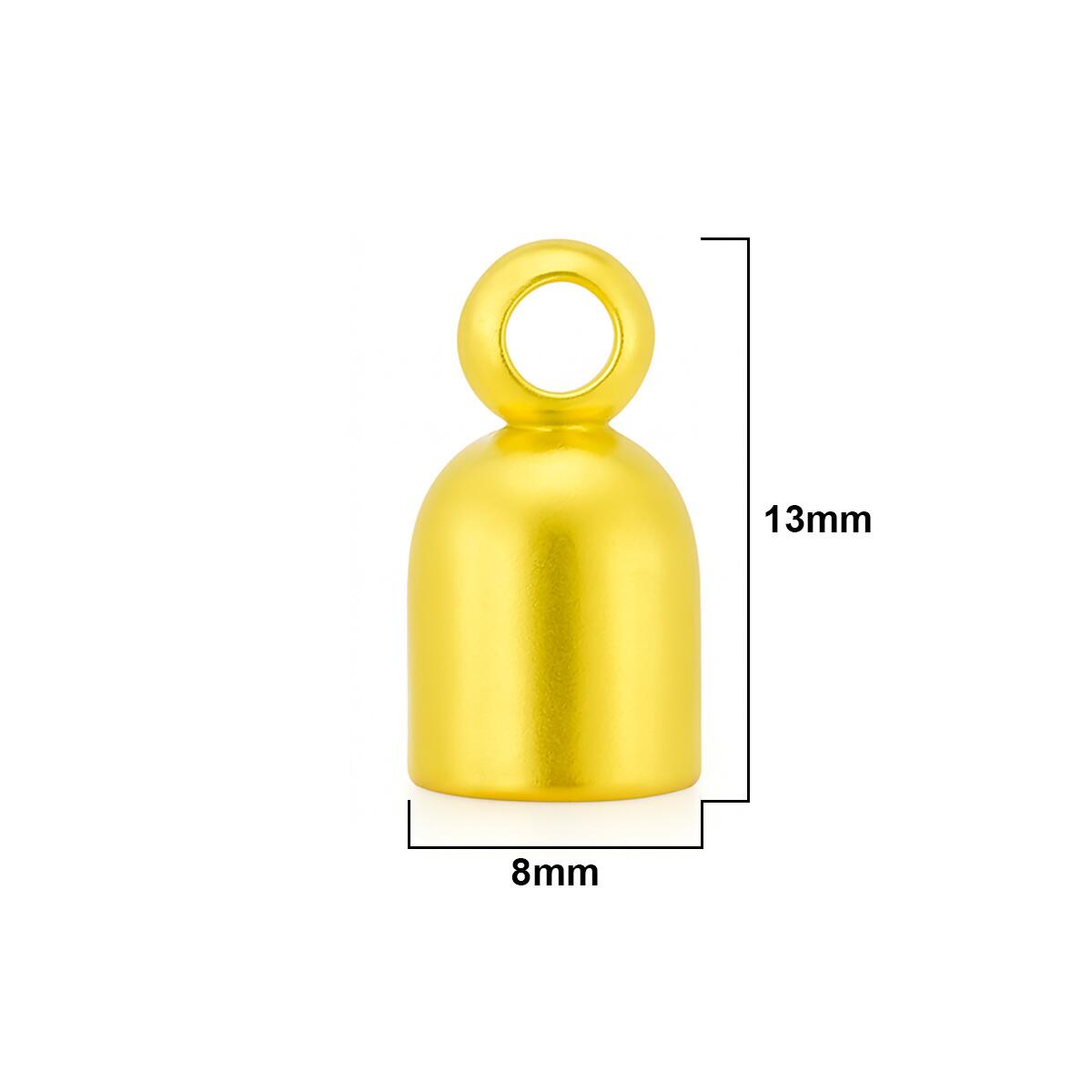 Medidas aproximadas: 13 mm de altura × 8 mm de largura, com argola interna de 1 mm.