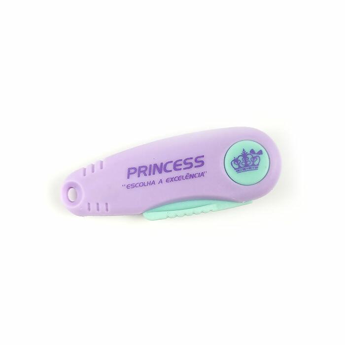 Descrição Tesoura de Arremate Dobrável Princess - 12cm x 2,5cm - Lilás/Verde - UT.1073
