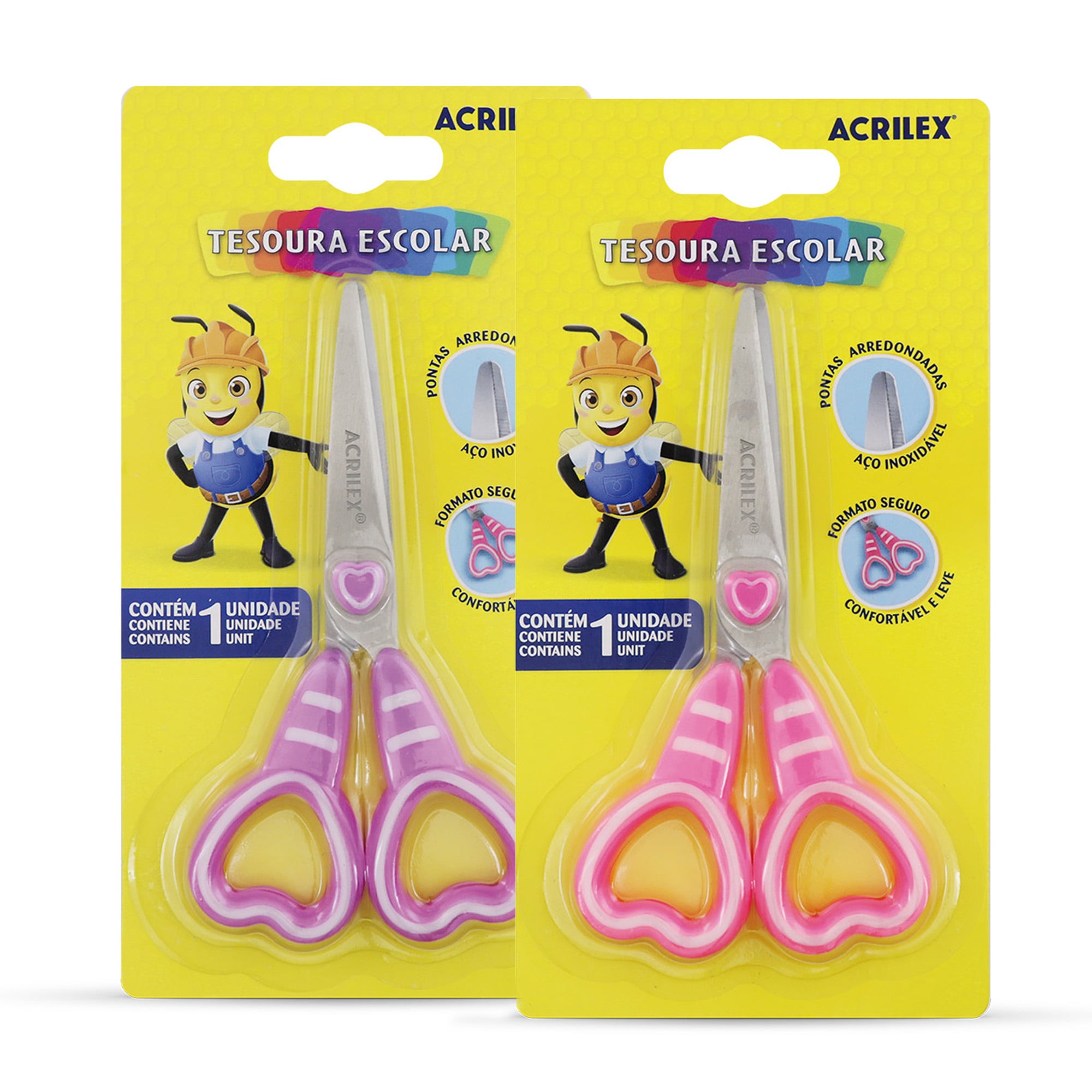 Descrição Tesoura Escolar Acrilex Infantil Coração Aço Inox Segura