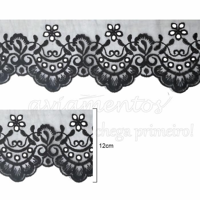 Descrição Tule Bordado - 12cm x 15y - Preto - RO.150676