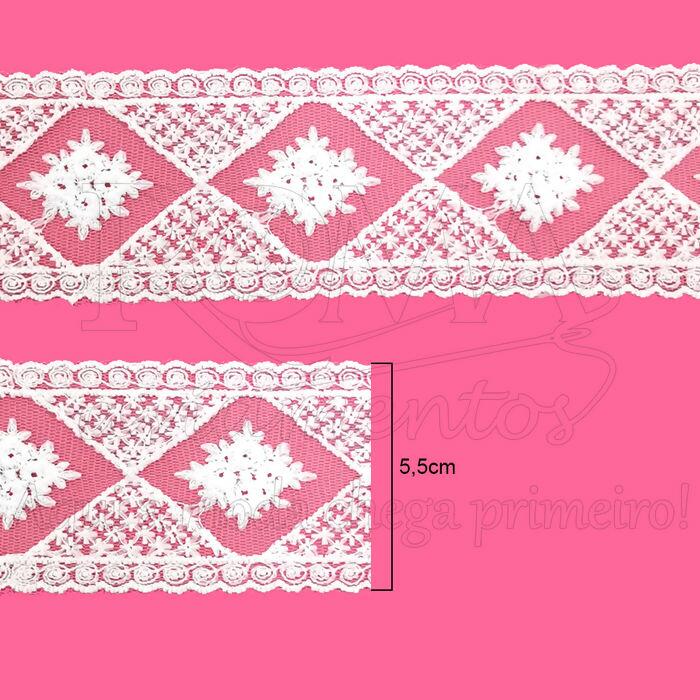 Descrição Tule Bordado - 5,5cm x 15y - Branco - RO.150983