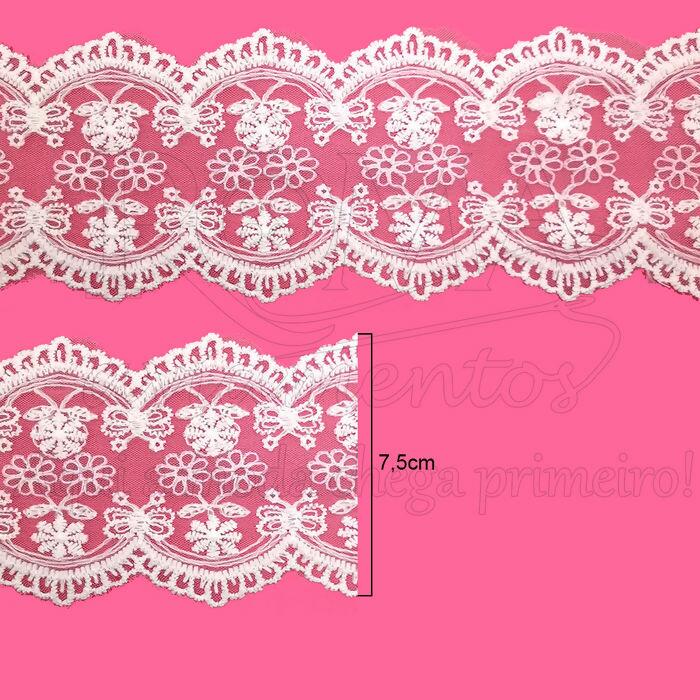 Descrição Tule Bordado - 7,5cm x 15y - Branco - RO.150982