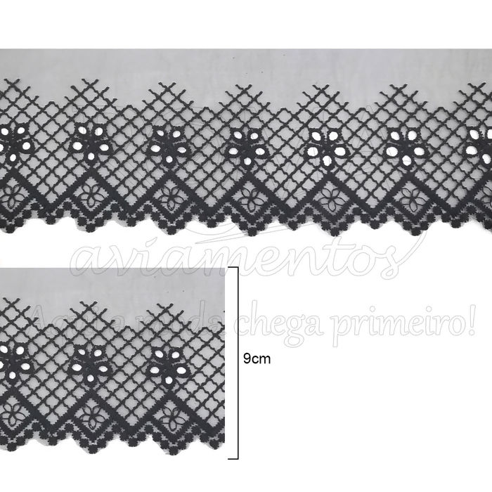 Descrição Tule Bordado - 9cm x 15y - Preto - RO.150677
