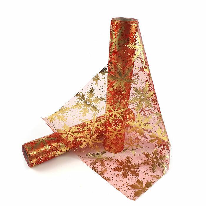 Tule Natal Princess - 28cm x 5m - Vermelho/Dourado - RO.153509