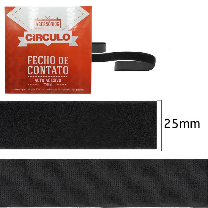 Velcro Adesivo 25 mm Macho e Fêmea ( PAR ) 25mts - Preto - Círculo S/A