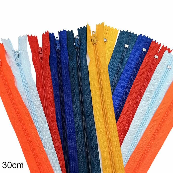 Descrição Zíper comum - 30cm - 10 unidades - Cores
