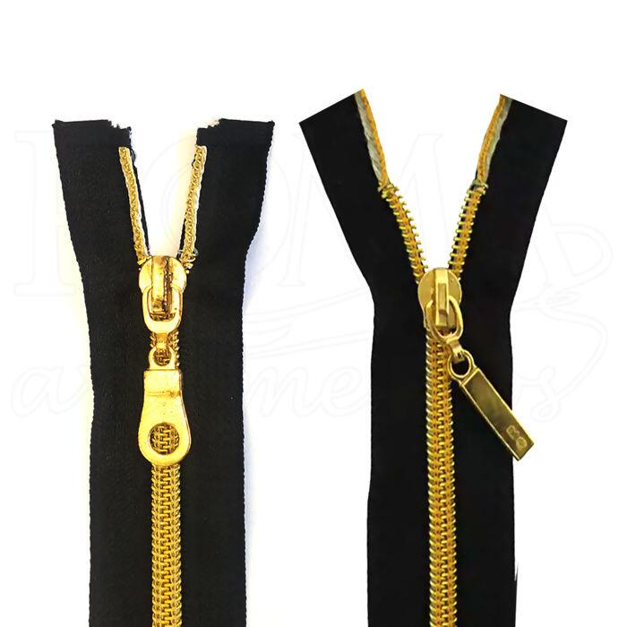 Zíper Fixo aluminizado - Preto/Dourado c/10 unidades