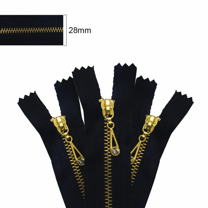 Zíper Metal Cursor com Strass - 28mm - 10 unidades - Preto 310 - ZMD3